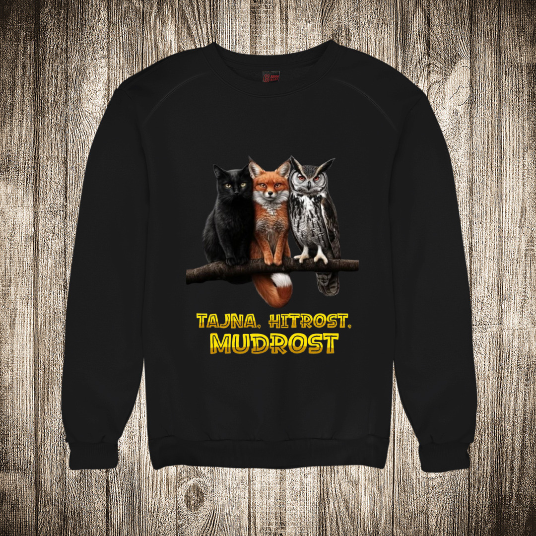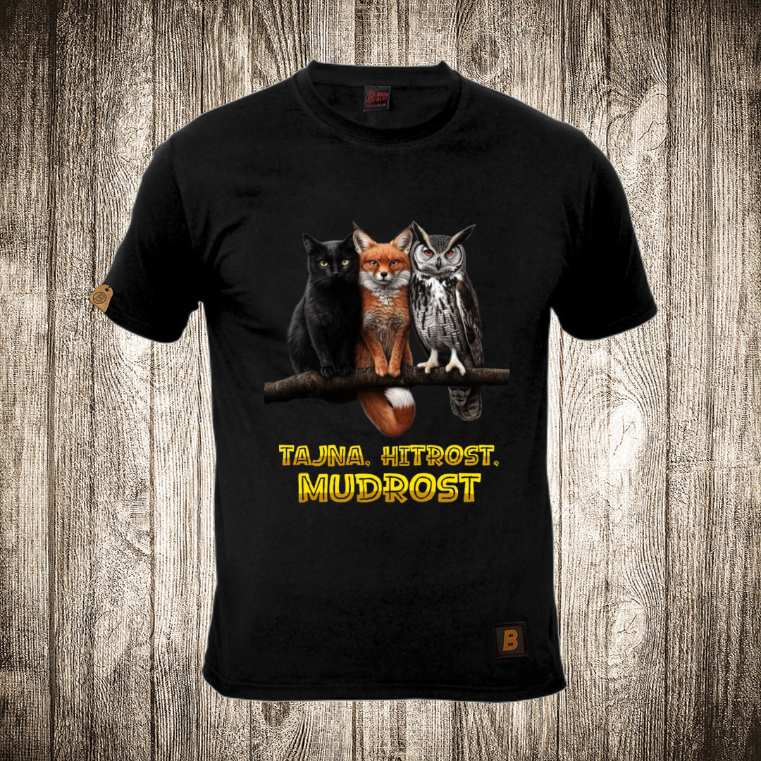 muska majica boja crna slika tajna hitrost mudrost sova lisica macka