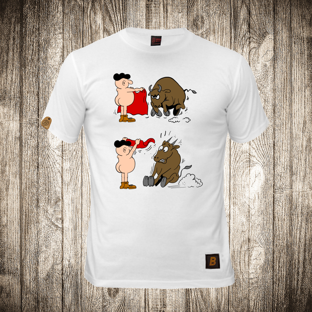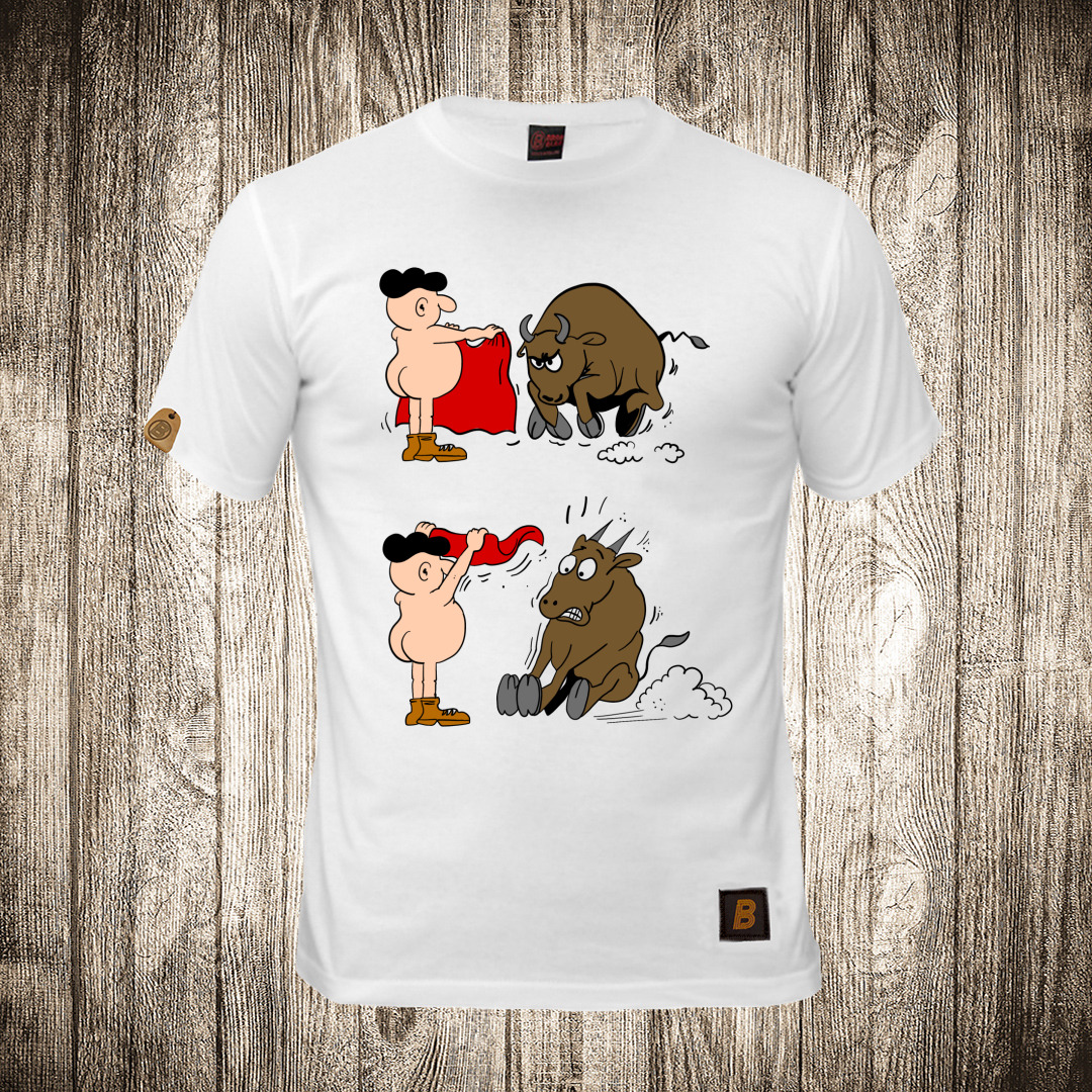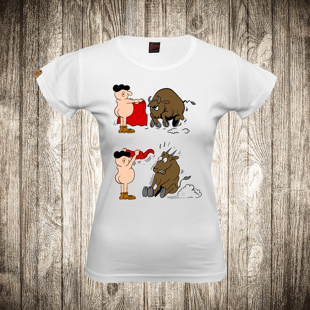 zenska majica boja bela slika toreador i bik toreador bez odece
