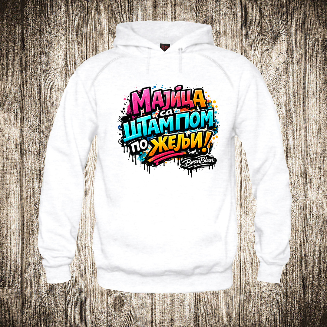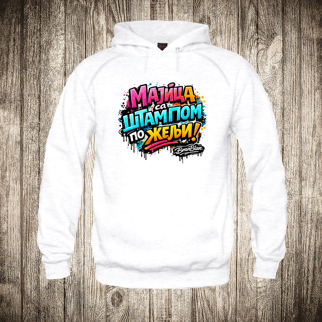 duks sa kapuljacom boja bela slika majica sa stampom po zelji tvoja ideja nasa majica