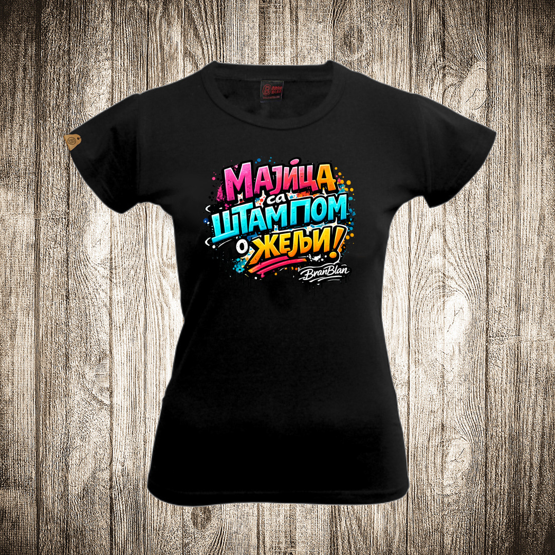 zenska majica boja crna slika majica sa stampom po zelji tvoja ideja nasa majica