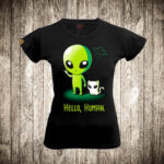 zenska majica boja crna slika vanzemaljac 2 hello human