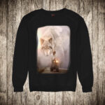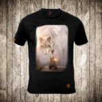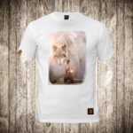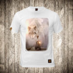 muska majica boja bela slika vuk i motorista priroda