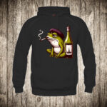 duks sa kapuljacom boja crna slika zaba sa cigarom i vinom