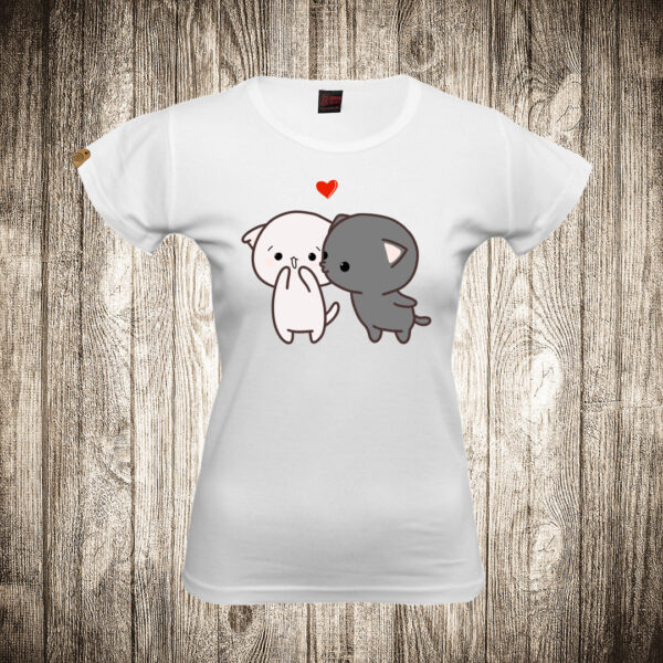 zenska majica boja bela slika zaljubljeni macici