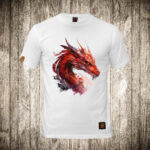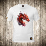 muska majica boja bela slika zmaj vodene boje