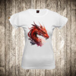 zenska majica boja bela slika zmaj vodene boje