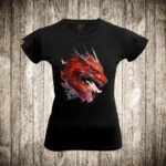 zenska majica boja crna slika zmaj vodene boje